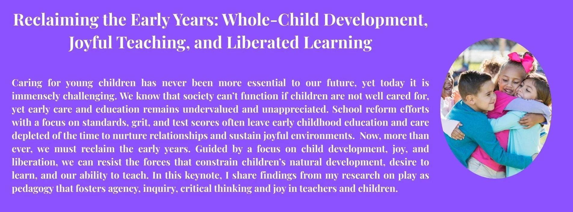 Today, her talks will inspire teachers to reclaim their passion for education and discover the power of joyful teaching and liberated learning. Her courses will provide the support needed to lead with engaging developmentally appropriate child-driven pedagogies that foster liberation, joy, and thriving.